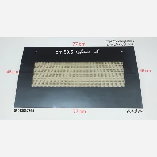 شیشه درب اجاق گاز فردار خم از عرض 45 - 77 آکس دستگیره 59.5 سانتیمتر ( مشکی )