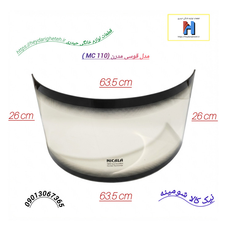 شیشه بخاری گازی نیک کالا شومینه مدل قوسی مدرن (MC 110 ) 63.5 - 26 ( ساخت آلمان )