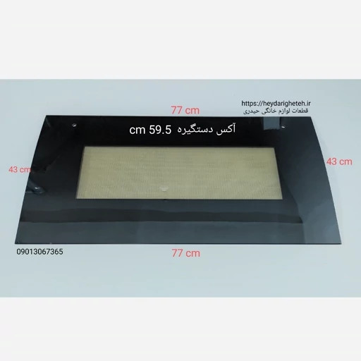 شیشه درب اجاق گاز فردار خم از عرض 43 - 77 آکس دستگیره 59.5 سانتیمتر ( مشکی )